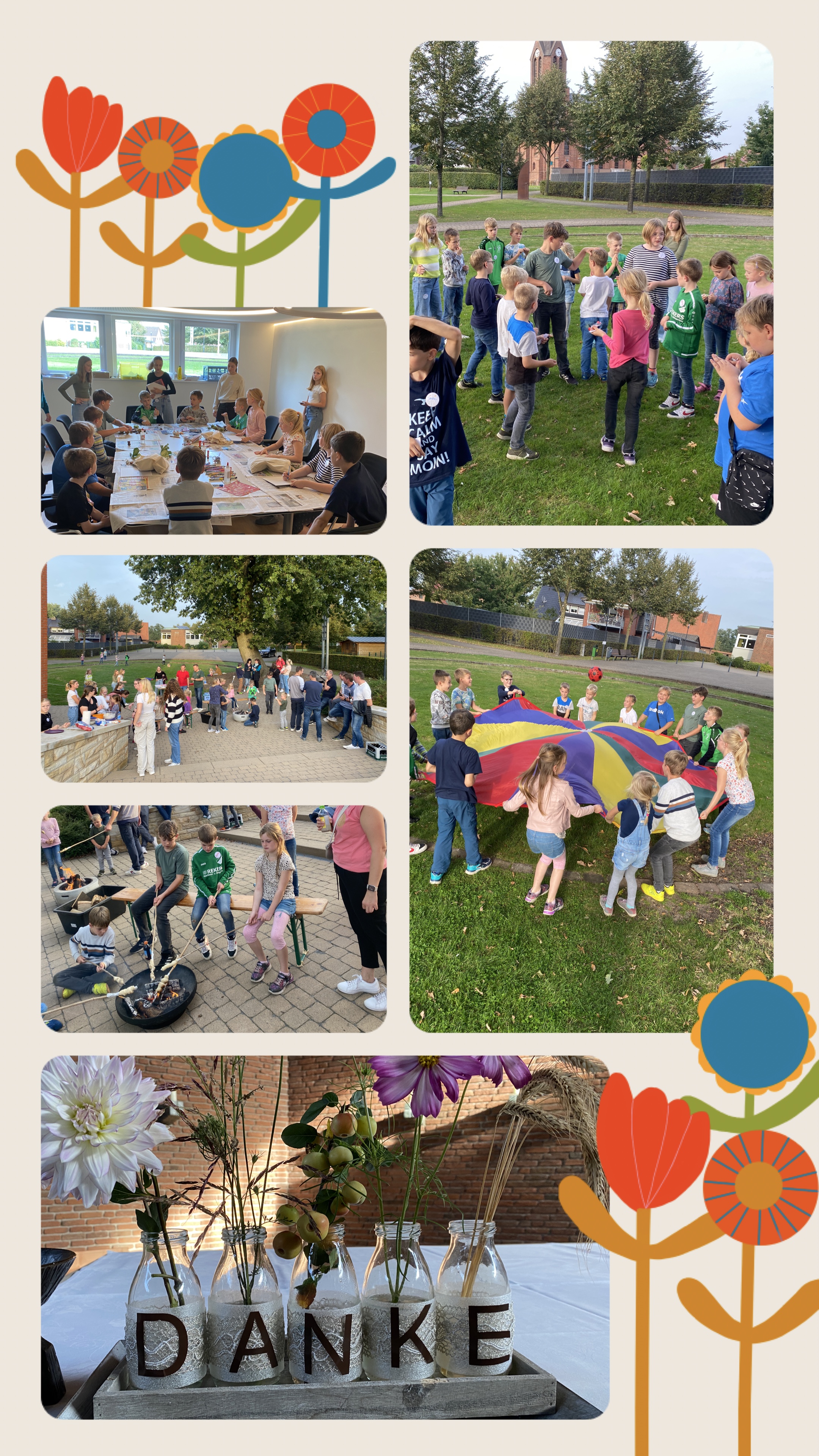 Wir haben viele Spiele gespielt und in Workshops gebacken, gemalt oder gebastelt. Zum Abschluss des Nachmittages haben wir gemeinsam mit den Familien einen Erntedank Gottesdienst gefeiert und anschließend bei Stockbrot am Lagerfeuer den Tag gemütlich ausklingen lassen.