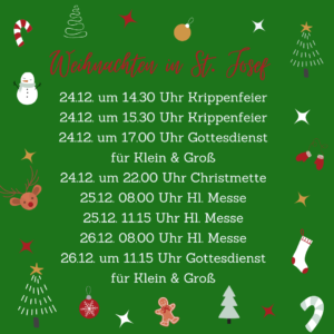 Ganz herzlich laden wir alle Gemeindemitglieder zu den Gottesdiensten am Heiligabend und an den Weihnachtsfeiertagen ein.