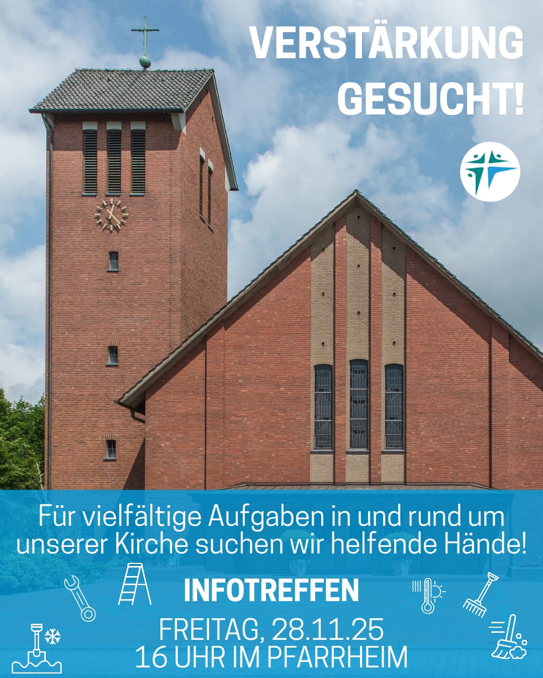 Für die vielfältigen Aufgaben rund um und in unserer Kirche suchen wir Dich!