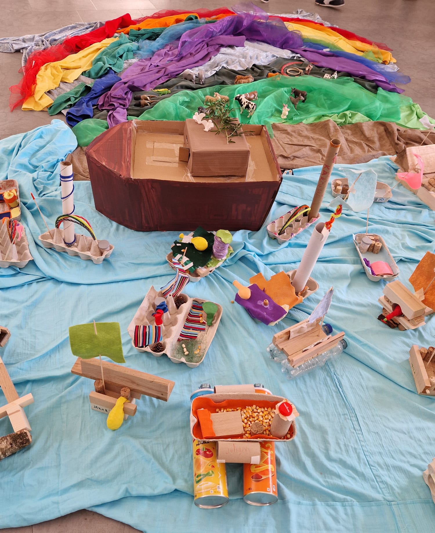 Nachmittags konnten sich die Kinder darüber Gedanken machen, was die Geschichte eigentlich mit uns und unserem Leben heute zu tun hat. In verschiedenen Workshops haben sie sich kreativ und spielerisch damit auseinandergesetzt: Was trägt mich? Wo fühle ich mich sicher wie in einer Arche? Wem vertraue ich?