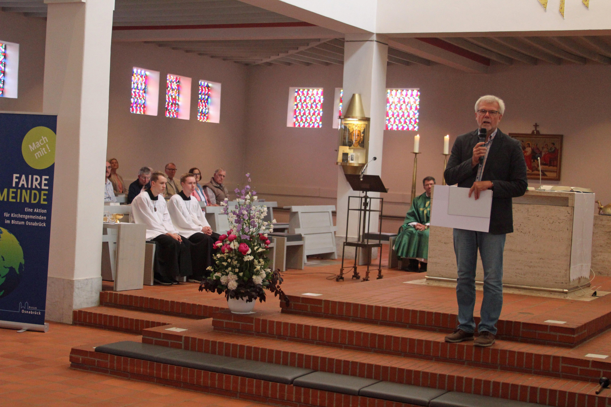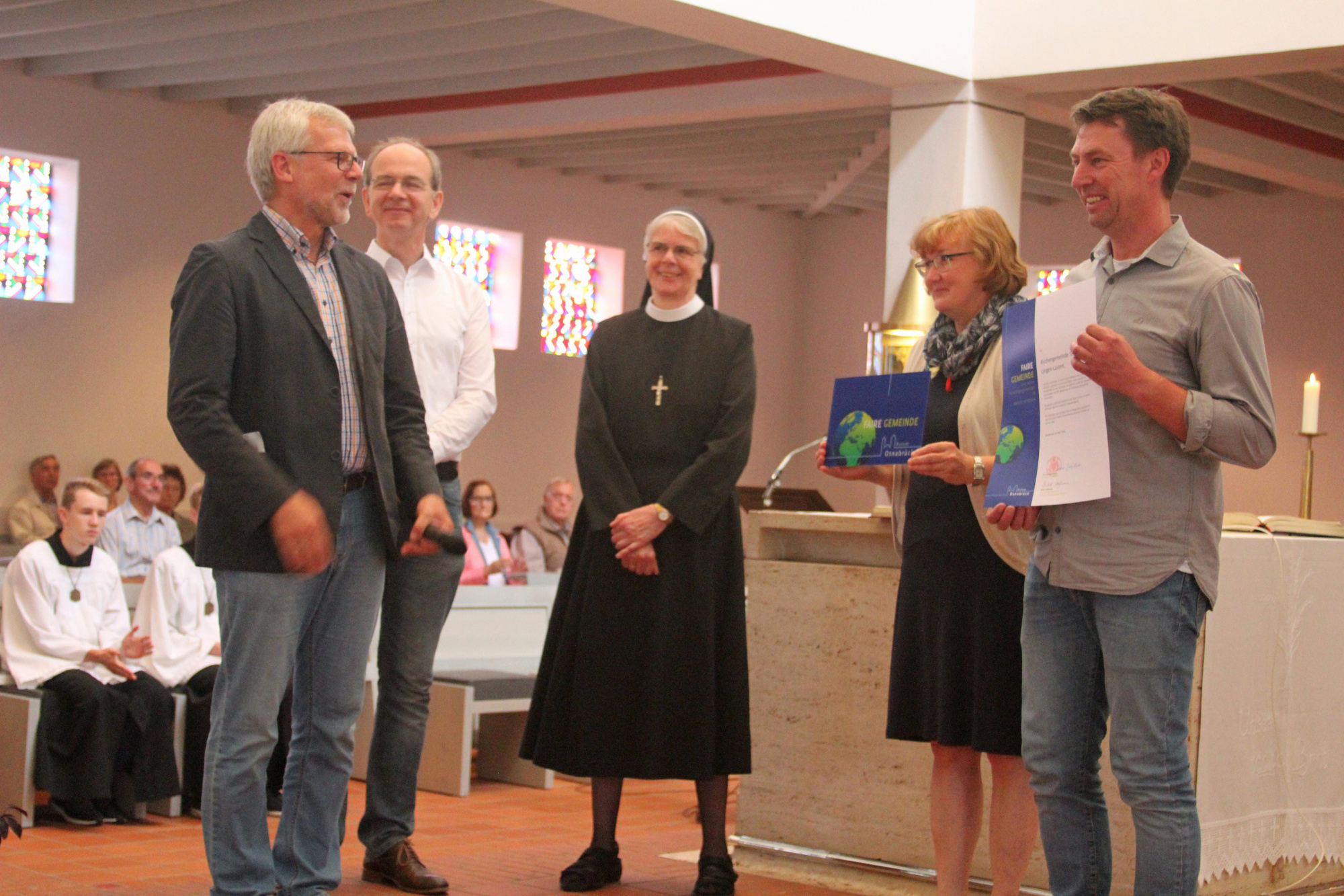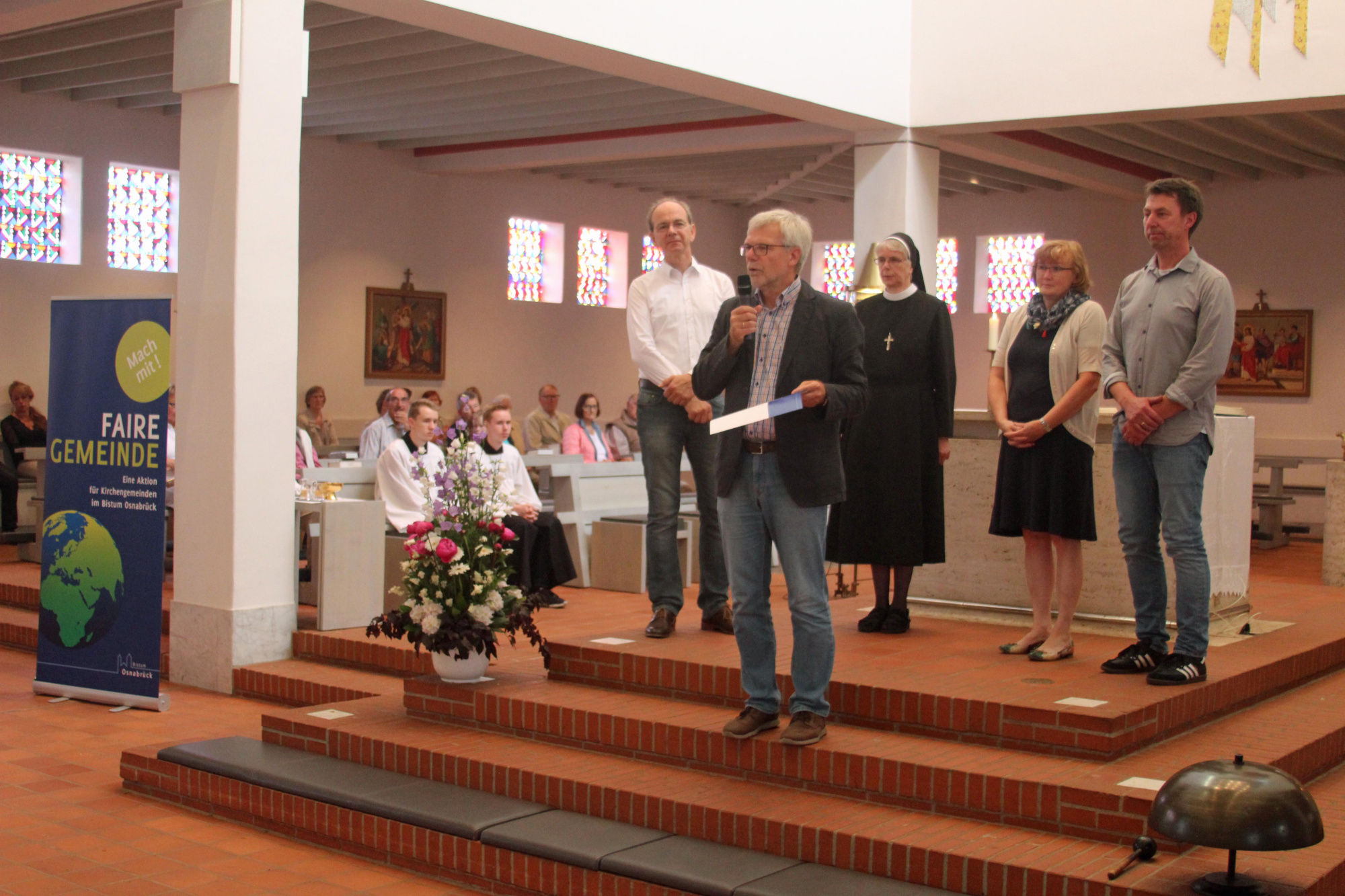Unsere Kirchengemeinde ist am Sonntag, 03.06.2018 als 101. „Faire Gemeinde“ im Bistum Osnabrück ausgezeichnet worden. Ein großer Dank an den Ausschuss „Solidarisch handeln“ des Pfarrgemeinderates für das Begleiten dieses Projektes. Es bleibt weiterhin Aufgabe für die ganze Gemeinde!