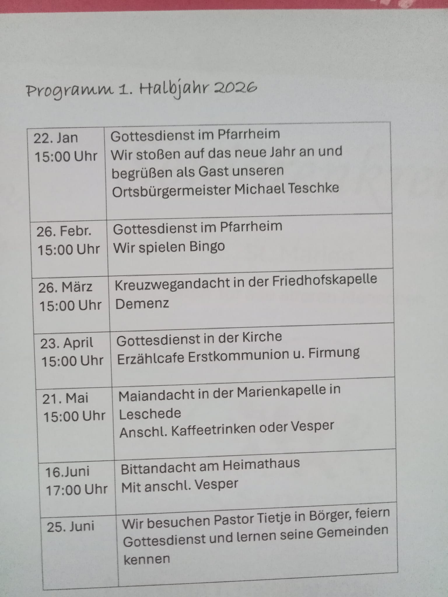 Seniorenkreis St. Marien Brögbern Jahresprogramm 2025